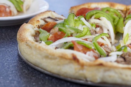 Feta cheese, ground beef, sausage, pepperoni, onions, mushrooms