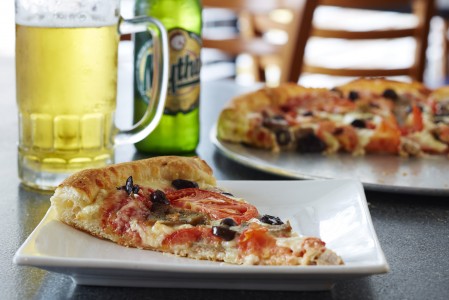 Extra cheese, feta cheese, gyro, tomatoes and Kalamata black olives